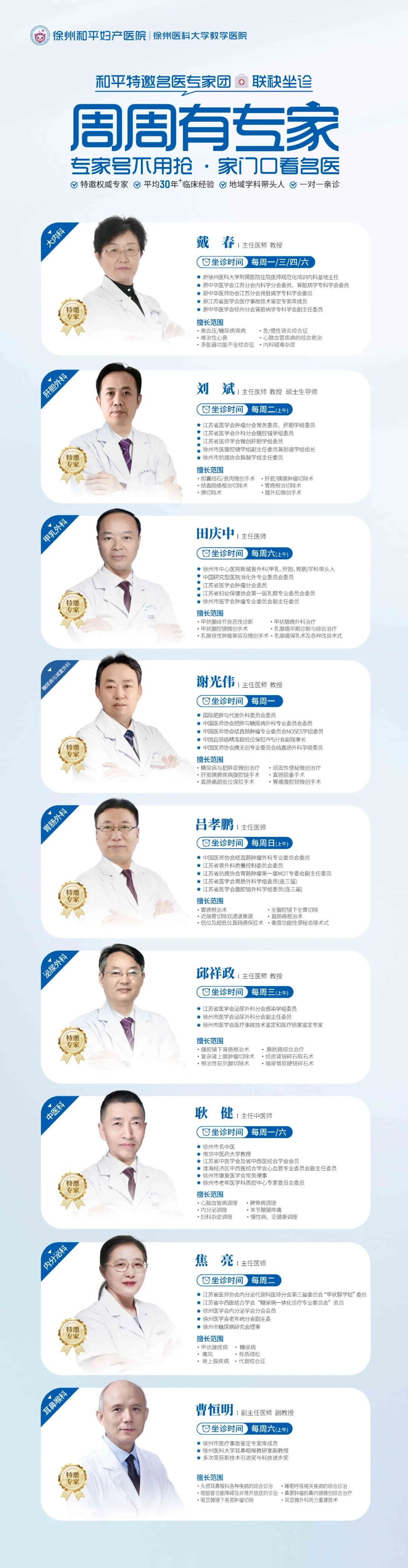 | 内科 | 戴 春 | 主任医师 特聘专家 | 周一、周三、周四、周六 |