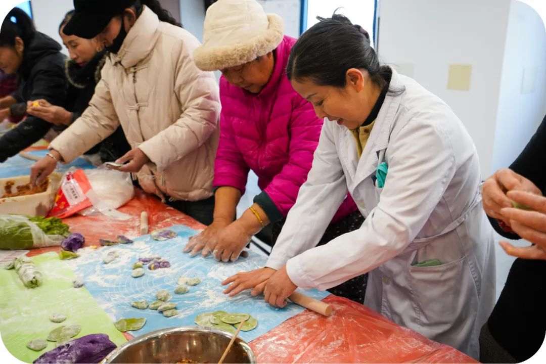 健康义诊结束后,医生们、社区居民以及工作人员撸起袖子变身“大厨”,大家分工明确,配合默契,现场气氛热闹非凡。不一会儿,一盘盘热气腾腾饺子便摆满了桌面。大家品尝着自己的劳动成果,脸上洋溢着幸福的笑容,冬至的寒意也在这欢声笑语中消散。