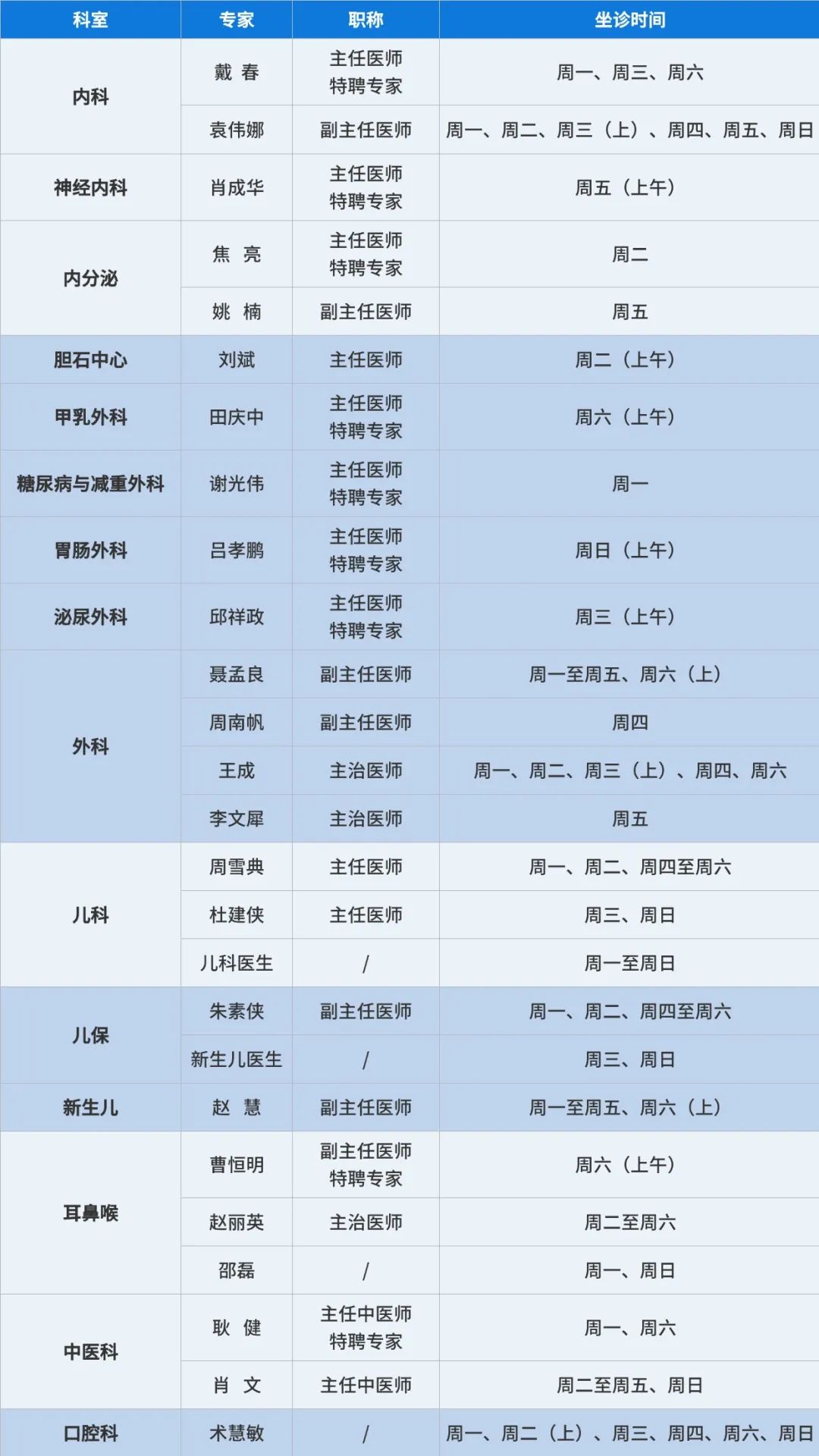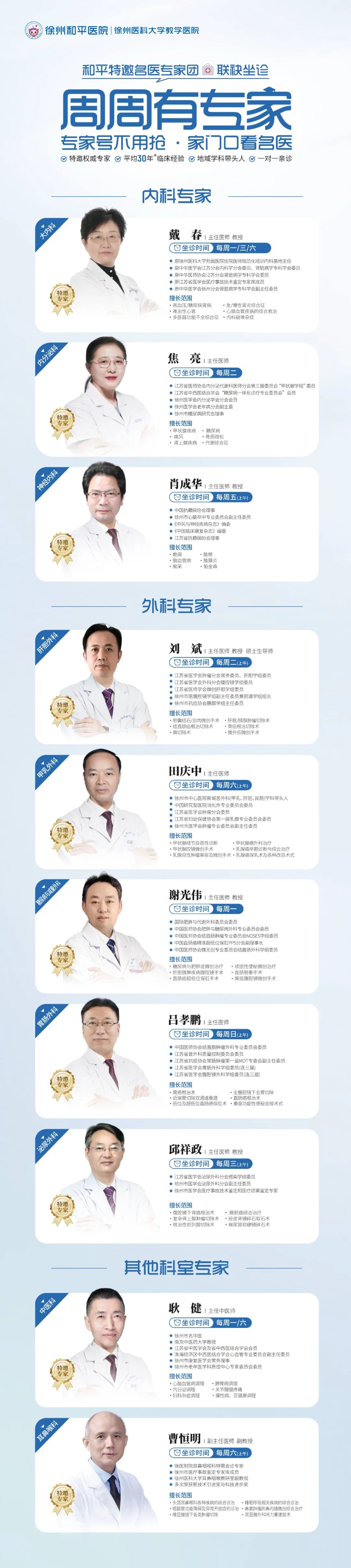 徐州和平医院专家坐诊时间表