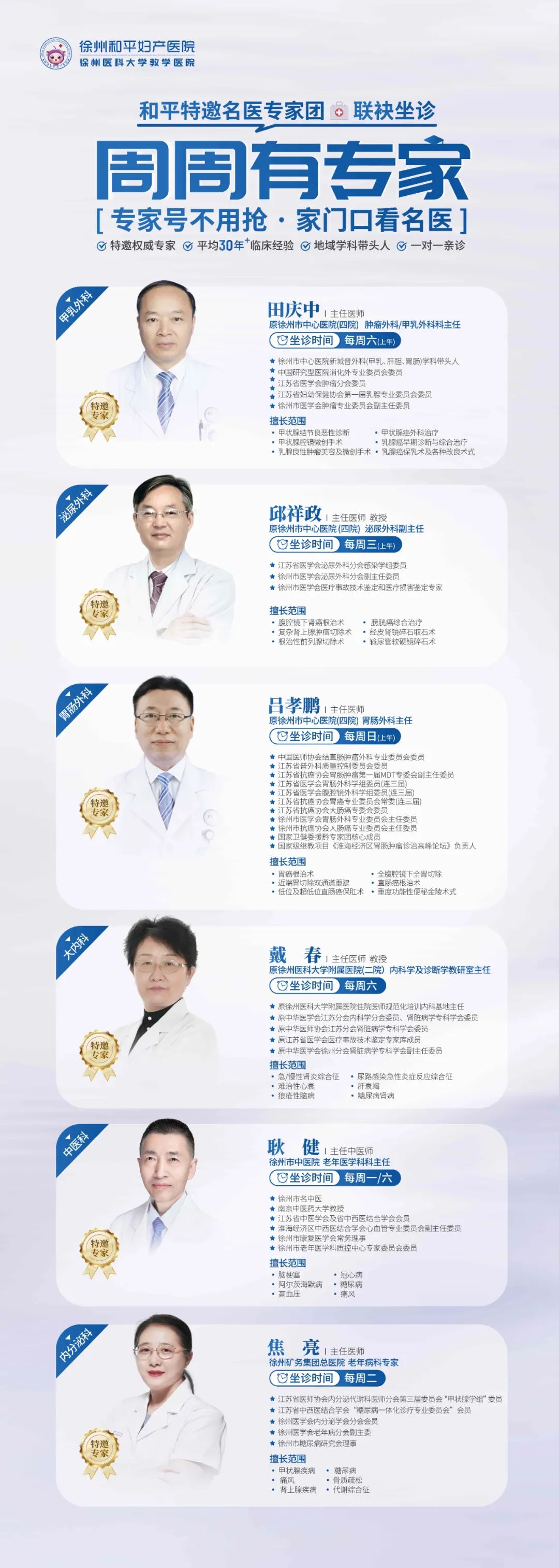 2024年10月14日-10月20日和平医院专家坐诊时间表需要的朋友们赶紧收藏一、专家坐诊多学科专家坐诊表科室专家职称坐诊时间外科田庆中主任医师特聘专家周六(上...